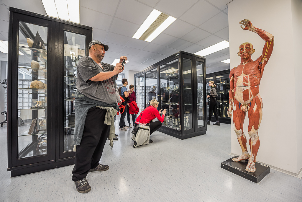 Návštěvníci si mohou v malých skupinách volně projít expozici Anatomického muzea, ve které jim bude k dispozici odborný zaměstnanec Anatomického ústavu, jenž v případě zájmu zodpoví dotazy nebo se ujme menšího výkladu.