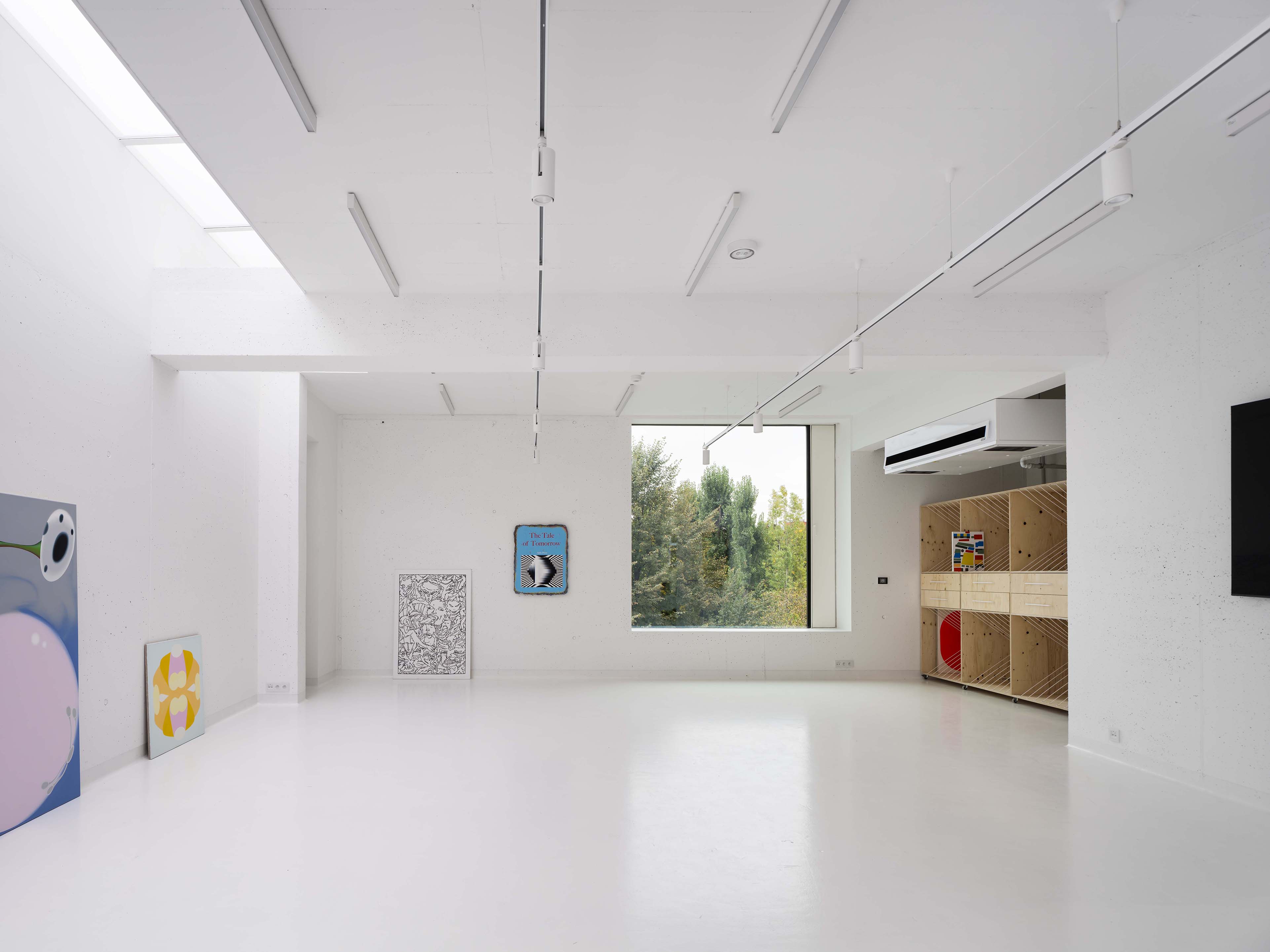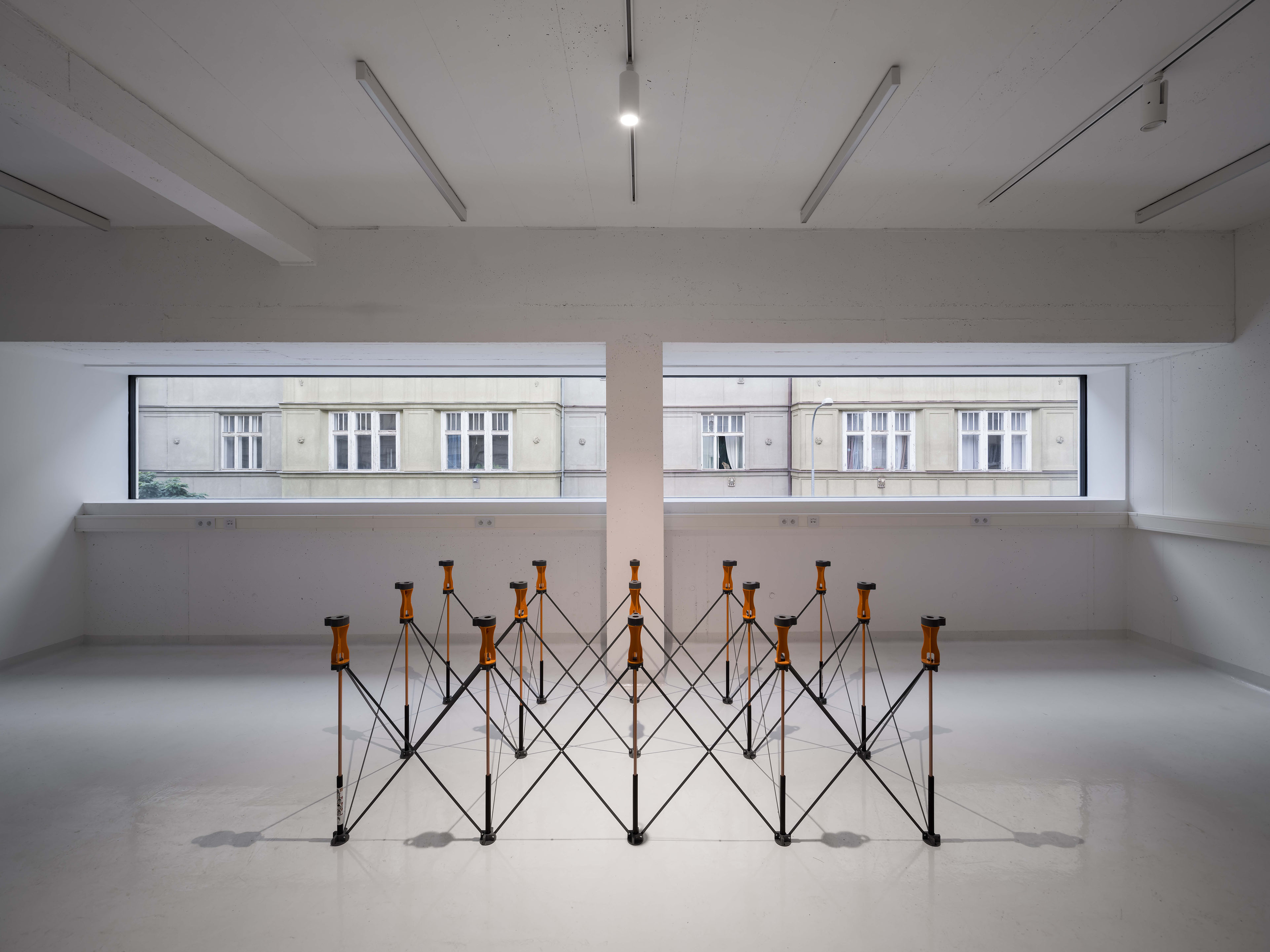 Stavba ateliérů je charakterizována třemi kvádry, výškově různými patry výtvarných prostorů doplněnými terasou. Ateliéry jsou navrženy jako tvůrčí laboratoře s dostatečným úložným prostorem a přiznanými konstrukčními prvky, které umožňují optimální prostředí pro tvůrčí proces studentů i pedagogů. Architekt Michal Palaščák s ohledem na potřeby uživatelů věnoval zvláštní pozornost přirozenému osvětlení a prostornosti interiérů. Velká okna zajišťují dostatek přirozeného světla, což je klíčové pro tvůrčí činnost, a prostorné interiéry umožňují efektivní práci. Další zajímavostí této moderní stavby je citlivé začlenění do stávající zástavby fakulty a jejího okolí.
