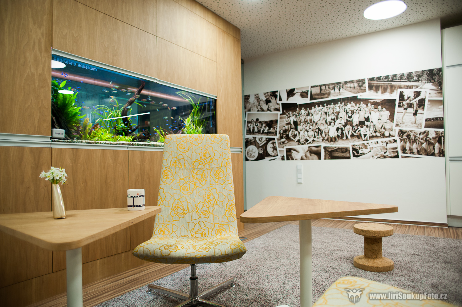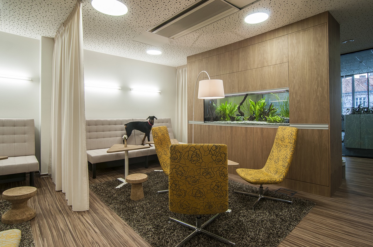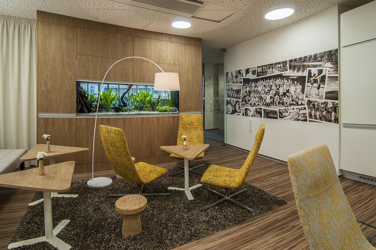 · Relaxační části u nás nejsou jen na oko, opravdu se využívají. Ve velké zasedačce dvakrát týdně cvičíme, v kuchyňce se opravdu vaří (a čepuje pivo) a pokud chcete posedět u kávy, uklidňující společnost vám budou dělat rybičky v akváriu.