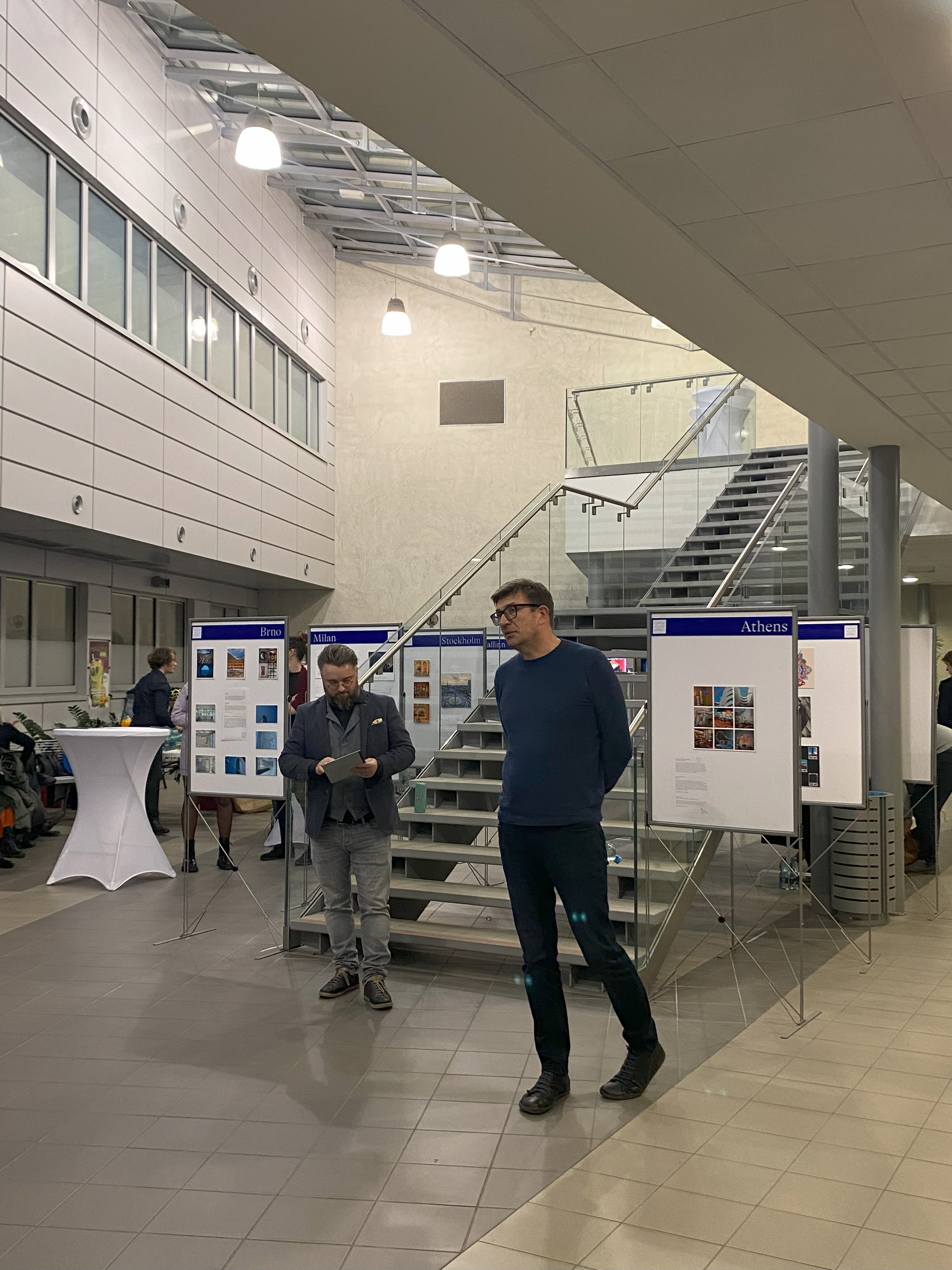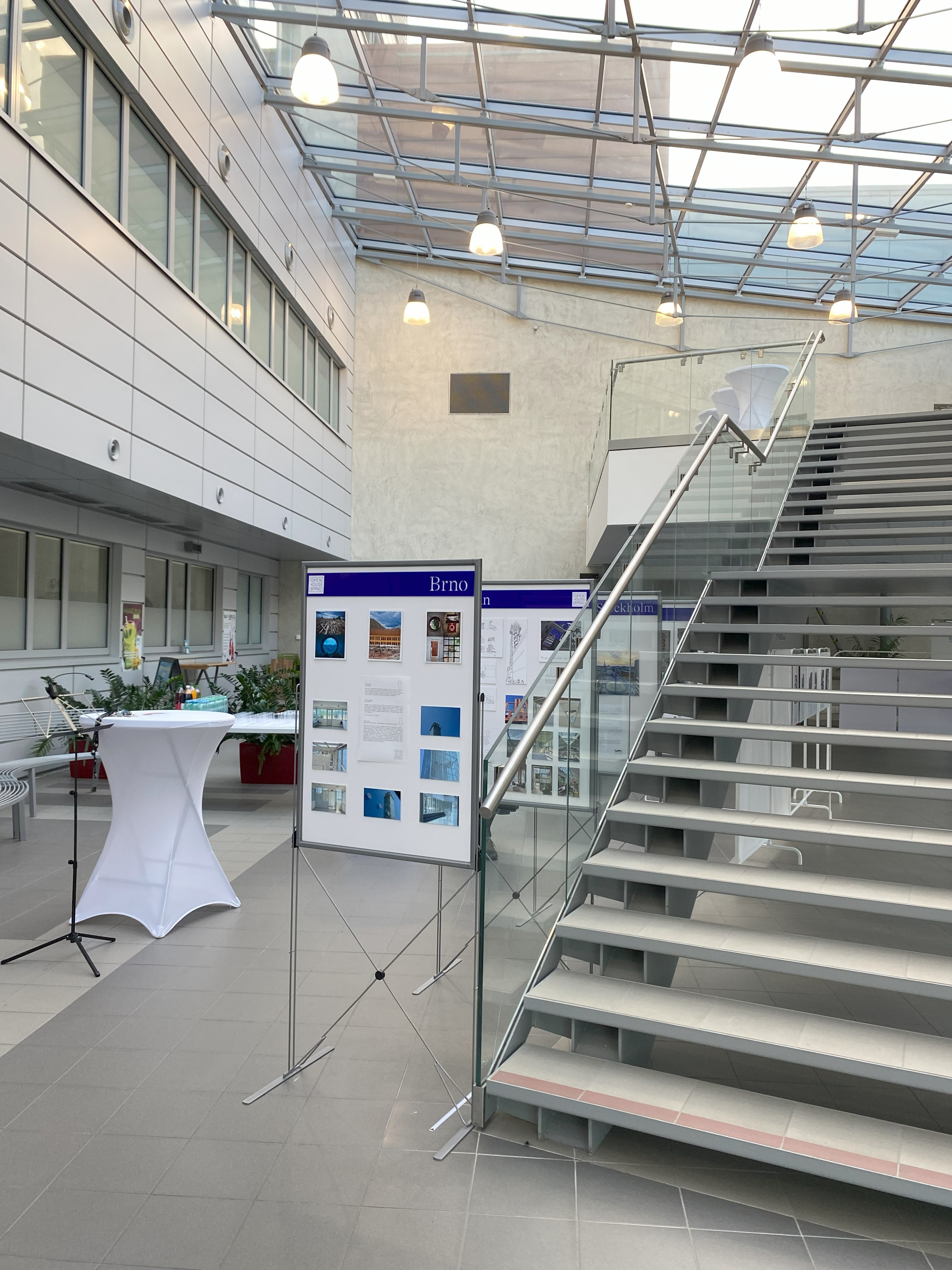 Dále byla krátce představena i druhá výstava Visual Stories, která je v nemocnici vystavena a do Brna přijela z portugalského Lisabonu. „Díky projektu Open House Europe můžeme nahlédnout i do dalších měst, kde probíhají festivaly Open House, a to skrze pohledy jejich návštěvníků, kteří v rámci výzvy Visual Stories sdíleli své dojmy z festivalu. V každém z 12 zapojených měst byla vybrána tři nejzajímavější díla, která jsou zde prezentována. Zastoupeno je i Brno, které představilo fotky Pavla Gurky a Nicoly Sella. Na blízké obrazovce pak jsou k vidění videopříspěvky, včetně brněnské práce Michaela Berezdase.“