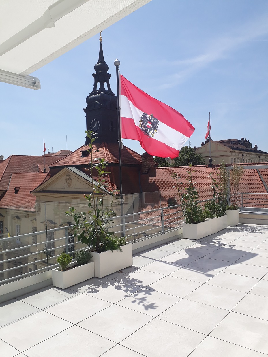 Dnešní konzulát sídlí v 5. patře nově zrekonstruovaného paláce Jalta, který byl postaven roku 1929 dle návrhu architekta Jaroslava Polívky jako polyfunkční dům s byty, obchodní pasáží a suterénním kinem. Mnohostranné využití pětipatrové budovy se projevuje na jejím funkčním prostorovém rozvržení i na jejím průčelí. Přízemní prostory za velkými, do ulice orientovanými, výkladci byly stejně jako pasáž určeny ke komerčním účelům, v 1. a 2. se nacházely kancelářské prostory, nejvyšší patra pak plnila obytnou funkci. Dnešní terasa konzulátu v nejvyšším patře budovy poskytuje krásný výhled na Dominikánské náměstí.